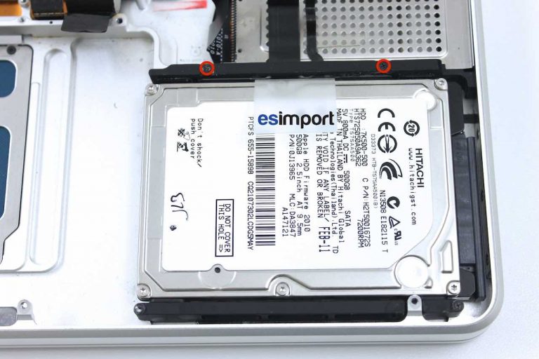 Dévisser les 2 vis qui fixent le câble du disque dur au topcase :