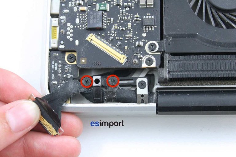 Avec le tournevis cruciforme, dévisser les 2 vis de maintien du câble LVDS de l'écran du macbook: