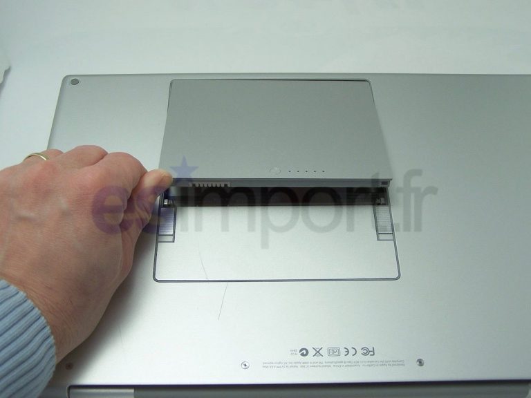 Sortir la batterie du macbook en déverrouillant les deux verrous simultanément :