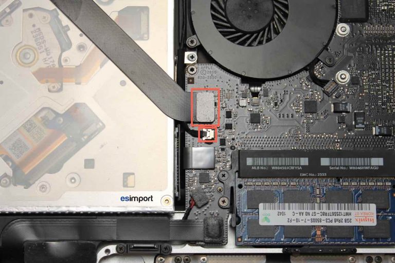 Il n’est pas nécessaire de dévisser la batterie, mais il faut en revanche la débrancher de la carte-mère pour éviter tout court-circuit :
