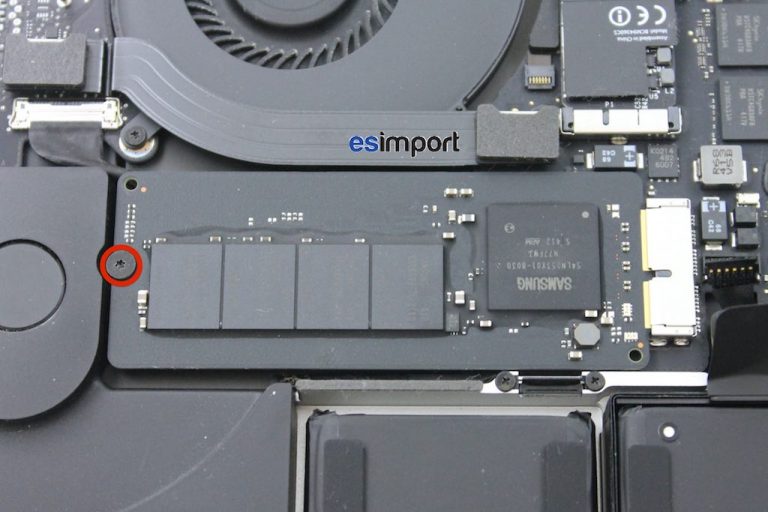 Avec le tournevis torx 5, dévisser la vis qui fixe le disque flash SSD sur la carte mère: