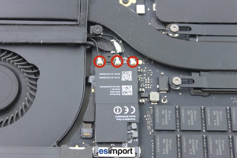 Avec le tournevis torx 5, retirer la vis qui maintient la carte Wifi/Bluetooth :