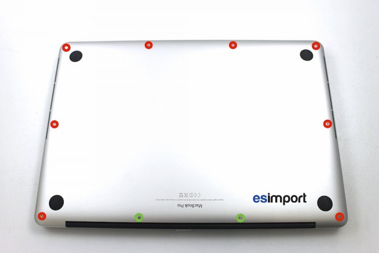 Avec le tournevis pentalobe macbook, dévisser les 10 vis du couvercle de fond :