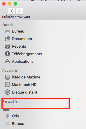 Le partage sera visible par les autres appareil sur Finder dans l'onglet "Partage":
