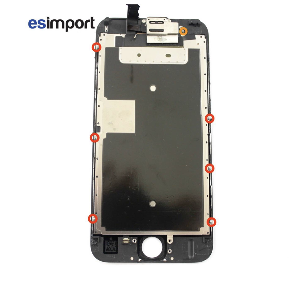 Nous allons maintenant récupérer la plaque qui protège le LCD. Dévisser les 7 vis cruciformes situées sur les bords et le haut de l’écran :